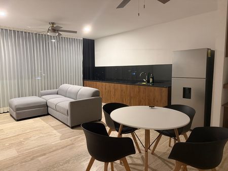 Amueblado,- en $17,500 (sin mascotas) sala, 2 TV, comedor para 3 o 4 personas, cama queen, refrigerador, lava secadora, micro.