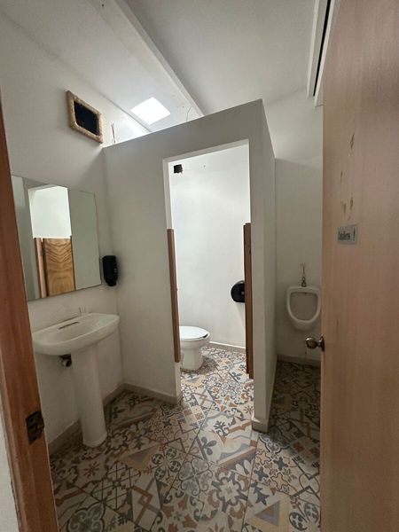 En total, el predio tiene 725 m2. Tiene baños y una bodega en la parte posterior. El precio de renta es de $70,000 pesos mensuales más IVA.