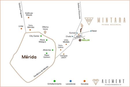 Mintara se encuentra a pie de carretera, logrando una conectividad directa a puntos de interés cercanos a la ciudad de Mérida y la Costa Yucateca.