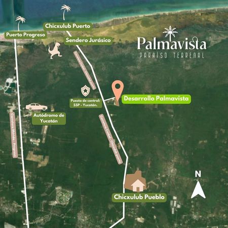 Palmavista es un fabuloso desarrollo de terrenos de inversión ubicado al norte de la ciudad de Mérida, a sólo 8 minutos de Chicxulub pueblo y sólo 8 minutos de Chicxulub puerto.