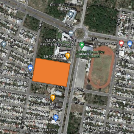 Terreno con superficie total de 14,972.04 m², con frente de 102.50 m sobre avenida 96 (Cronista Deportivo) y colindancia norte de 146 m. La propiedad da a tres calles, lo que brinda una ubicación estratégica y gran visibilidad comercial.