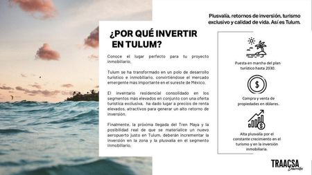 Tulum se ha transformado en un polo de desarrollo turístico e inmobiliario, convirtiéndose el mercado emergente más importante en el sureste de México.