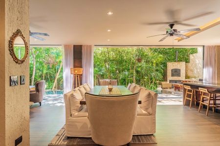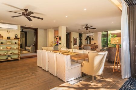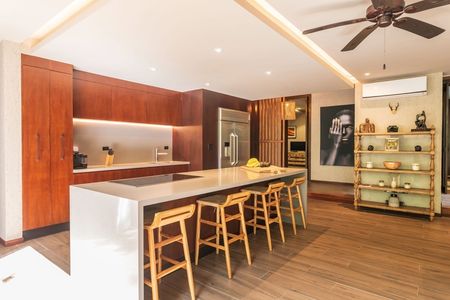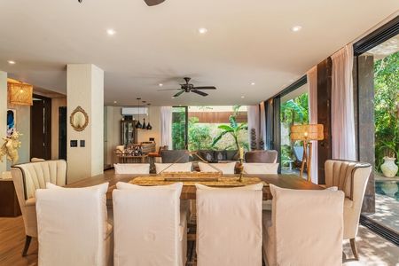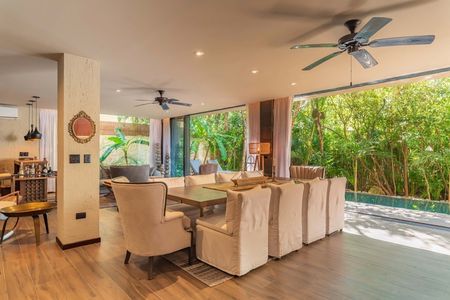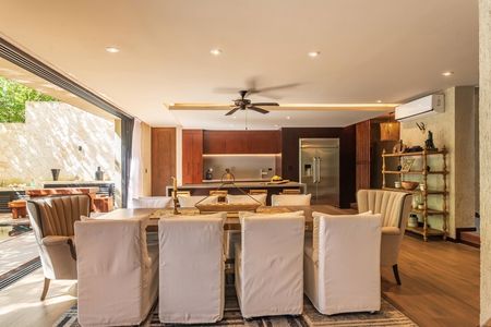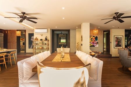 Este departamento de dos pisos diseñado y amueblado profesionalmente ofrece todo lo que podría desear en una propiedad de vacaciones o de retiro. El piso principal es amplio y lujoso con tres habitaciones, una gran sala de estar con bar y mesa para 12 personas, cuarto de lavado y cocina totalmente equipada con isla, refrigerador y congelador Monogram. Cuenta con increíble iluminación LED de Lutron, dos Smart TVs de pantalla grande y hermosos corredores entre las habitaciones. En la planta alta, encontrará una magnífica suite principal de 132 m2 con su propia entrada privada. Tambien cuenta con un espacio de oficina, amplio vestidor, balcón privado con vista a la selva y un lujoso baño principal.