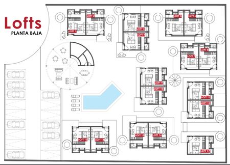 Cuenta con 18 lofts de aproximadamente 30 m² interiores, además de terrazas, jardines y áreas comunes con diversas amenidades.