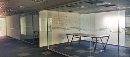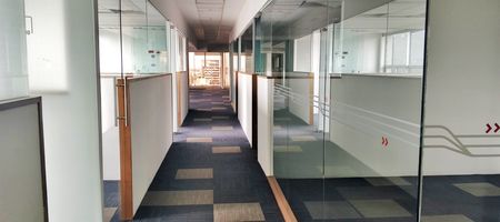 Actualmente, cuenta con acceso cerrado con puertas de cristal, área de recepción y espera, diferentes oficinas privadas, otras abiertas, áreas de juntas, áreas de trabajo abiertas, plafones en techos, divisiones de Tablaroca y cristales, alfombra trafico pesado asi como su cuarto para site.