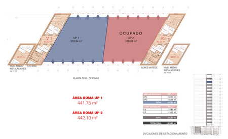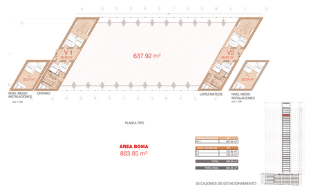 Oficinas en Venta en Torre Bansi, López Mateos, piso completo en renta con 883.85 m2 de área Boma y 637.92 m2 de área útil.