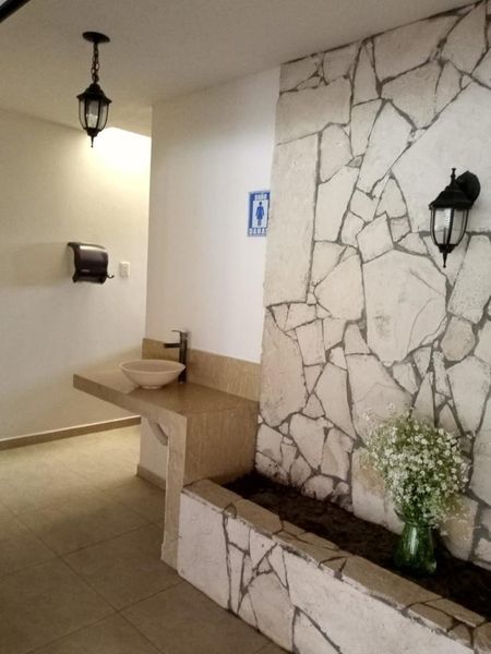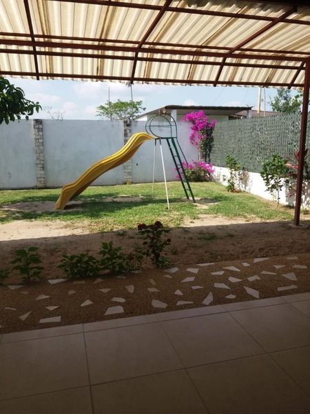 Esta espaciosa palapa cuenta con área de juegos, áreas verdes, baños para dama y caballero.