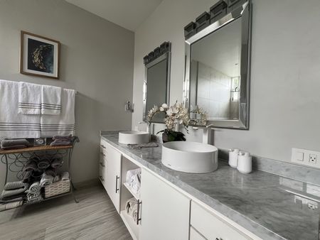 Amplia y cómoda recámara principal con salida directo al área social, incluye clóset vestidor, tocador equipado, doble lavabo, wc y doble regadera