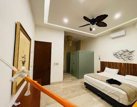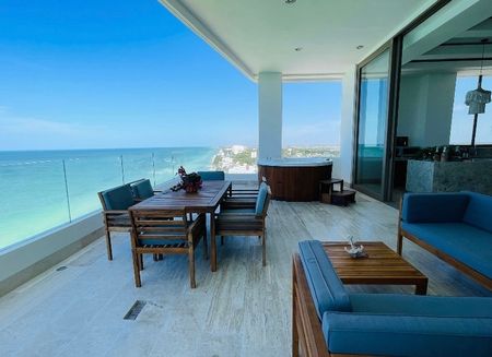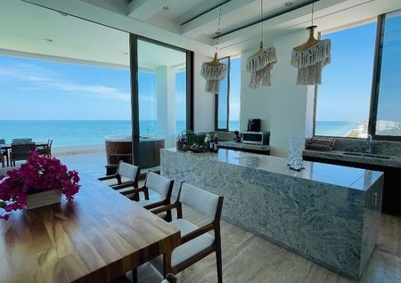 • Cocina en granito Bahamas white con barra y parrilla de inducción