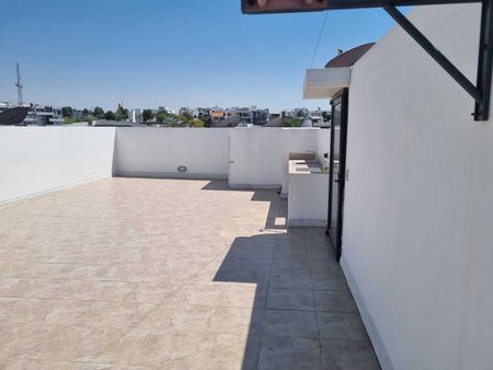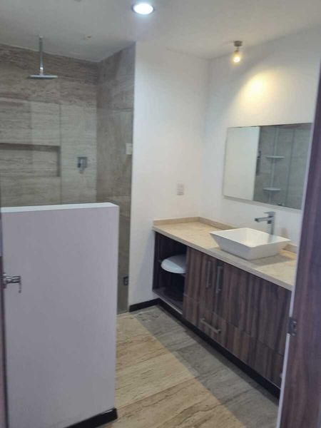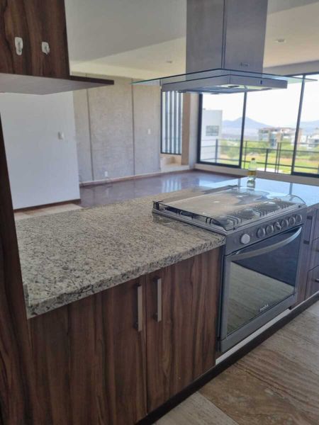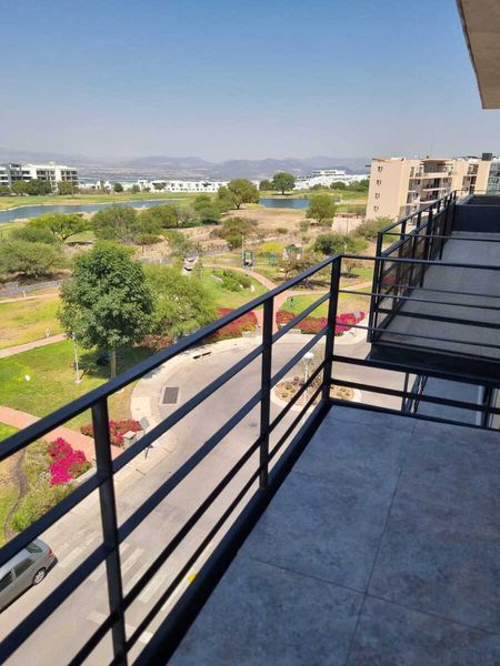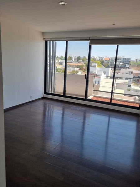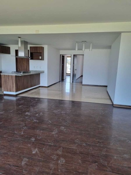 El departamento tiene dos recámaras dos y medio baños una estancia muy grande la cocina integrada un cuarto de lavado amplio , desde la sala se puede subir al roof garden el roof garden mide aproximadamente 70 m tiene dos estacionamientos y una pequeña bodega en el sótano. Está frente a un parque y después del parque sigue el campo de golf tiene una vista extraordinaria.