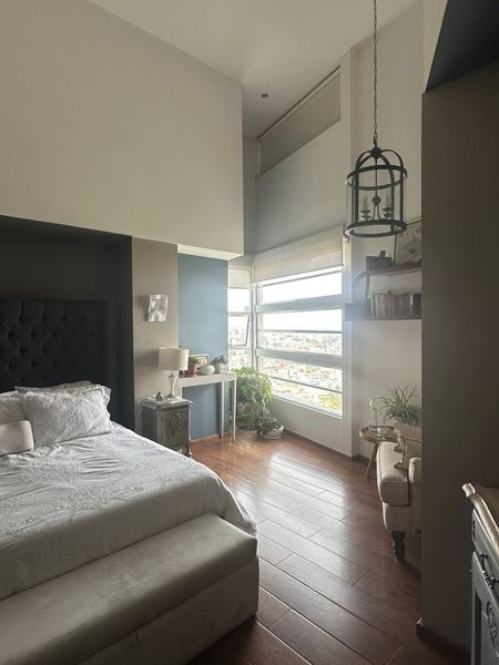 Si bajamos un nivel encontramos la Master suite, muy grande con balcón preciosa vista y un amplísimo baño con Walking clóset.