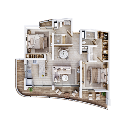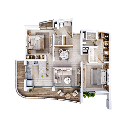Modelo Aqua Departamento de 2 recámaras + 1 balcón Penthouse
