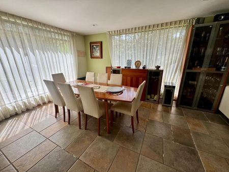 Si regresamos al vestíbulo al lado derecho, encontrarás una sala de techos altos con un ambiente bañado de luz natural. Al descender dos escalones . Su comedor es un espacio muy muy agradable Que invita y estimula la reuniones familiares con vista al jardín enorme posterior.