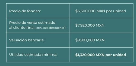 - Atractivo plan de inversión, 20% por debajo de valor avalúo bancario, inversión garantizada en fideicomiso.