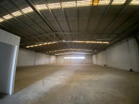 Cuenta con andén para carga y descarga, techos altos, área de oficina, baño.