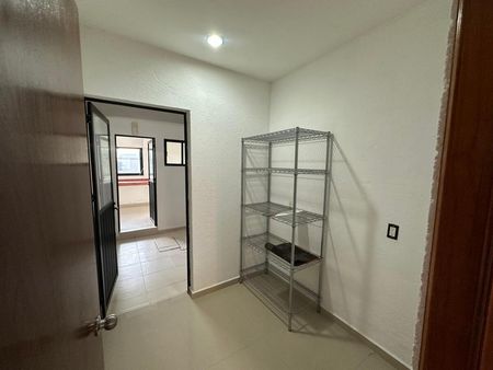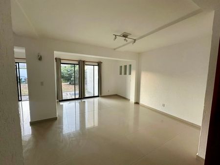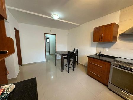 Planta baja- Cocina equipada con espacio para desayunador, Alacena + 2 pequeñas bodegas, sala/comedor con ventanales y vista al jardín, Pasillo lateral que conecta cochera con jardín.