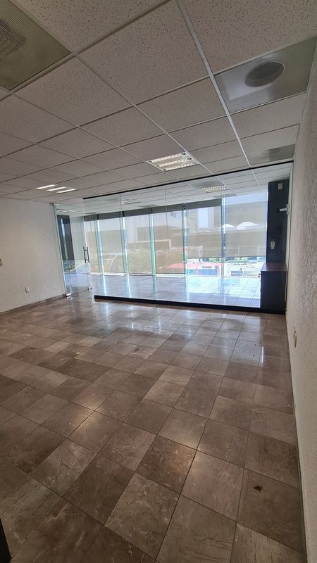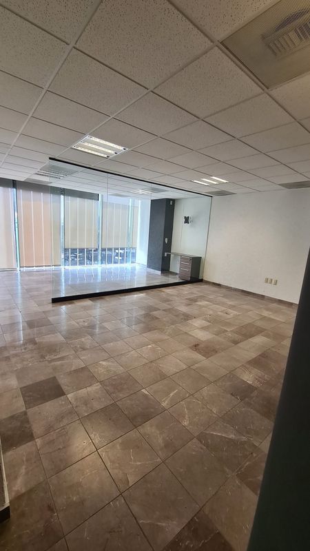 Oficina en renta que cuenta con divisiones, se entrega con A/A, cortinas, algunos muebles de oficina, medio baño interior. Cuarto para site