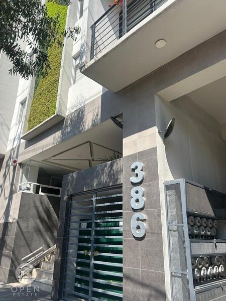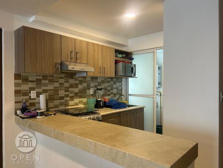 58 mts2, sala, comedor, dos habitaciones, cocina equipada, cuarto de servicio, dos baños completos uno en recámara principal, balcón, un lugar de estacionamiento