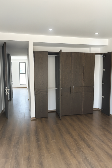 El departamento es nuevo, con acabados modernos, 3 recámaras, la master con vestidor y baño completo y las secundarias cada una con su baño y closet, estancia amplia, cuarto de servicio y terraza. Cuenta con 1 bodega.
