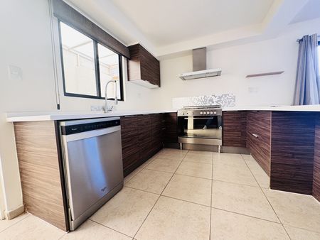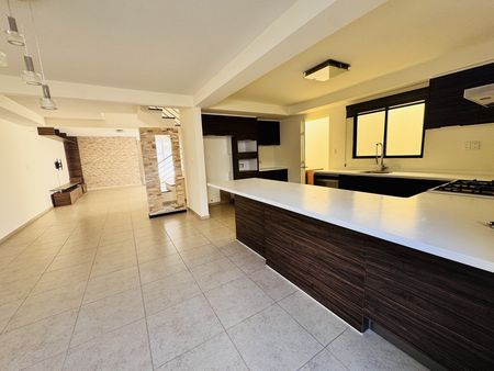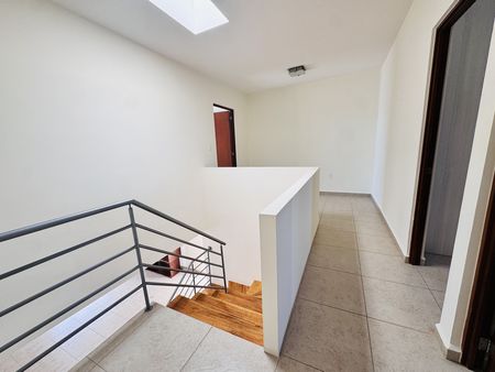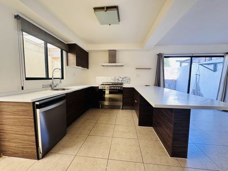 La casa destaca por su estancia amplia y luminosa, ideal para compartir en familia. Su cocina integral, equipada con una elegante barra de granito, se integra perfectamente con el área social, creando un ambiente contemporáneo y funcional. Además, cuenta con un jardín trasero de generosas dimensiones que invita a disfrutar del aire libre, y un pasillo lateral de servicio que otorga practicidad en el día a día.