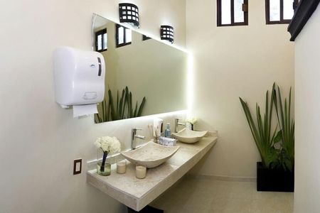 Cuenta con capilla Valet parking, baños de hombres y mujeres, área de bar