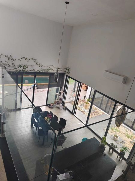 Recámara principal con pared de cristal y espejos laterales con vista al jardín interior. Cuenta con vanity, area de closet vestidor, área de espejos, espacio para colocar escritorio, gym personal o lo que desee.