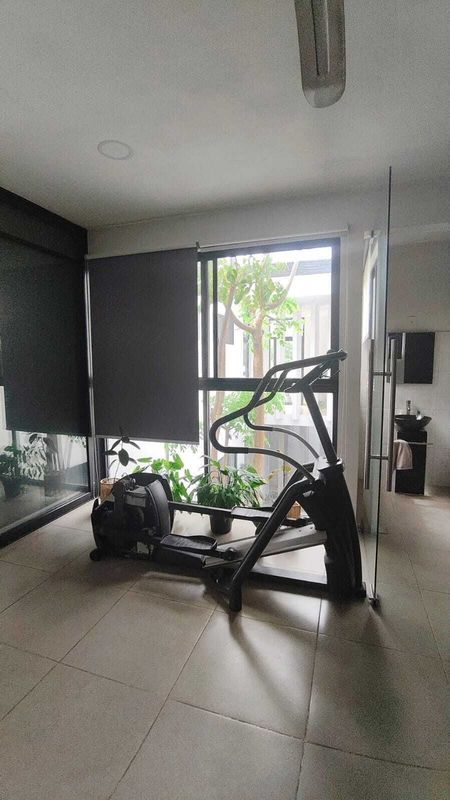 Persianas y aires acondicionados en toda la casa.
