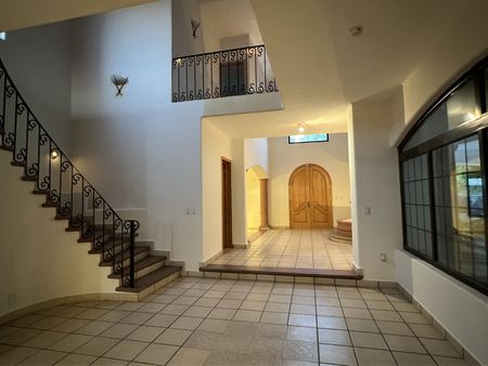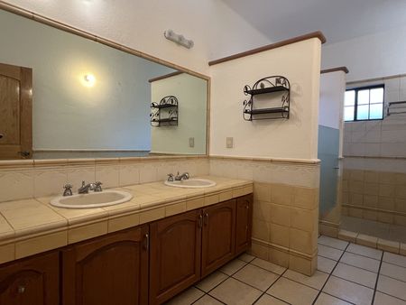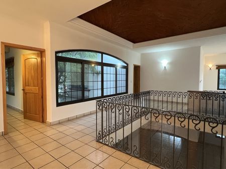 En el área de la escalera tiene una doble altura y bóveda catalana. La planta alta cuenta con área de TV y armario, 3 recámaras, la principal con baño y doble vestidor, las secundarias cada una con baño, tina y vestidor.