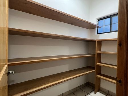 Tiene área de lavado techada, cuarto de lavado y cuarto de servicio con baño, cochera para 4 autos y bodega, pasillos laterales en ambos lados ofreciendo privacidad para tu casa, vigilancia 24/7.