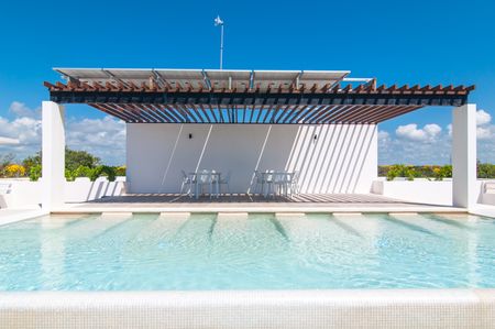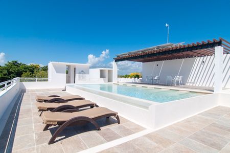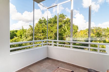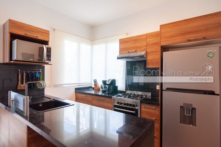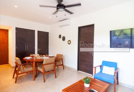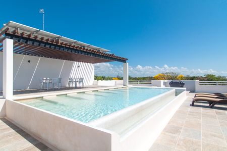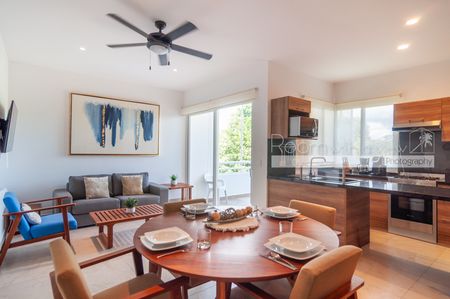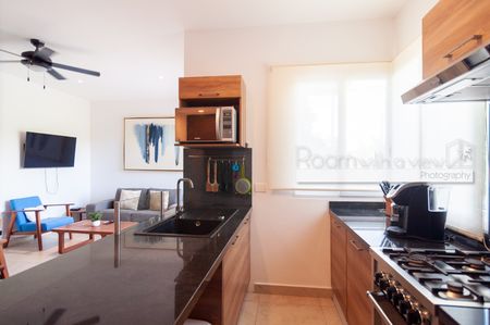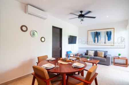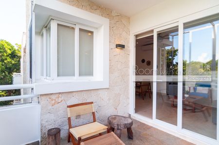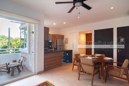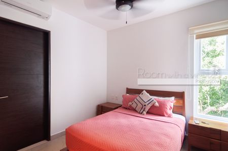 En su interior, este luminoso departamento de 2 recámaras y 2 baños ofrece un diseño amplio y abierto, abundante luz natural y un balcón cerrado con vista a la selva. Cuenta con cocina moderna con isla y electrodomésticos de alta gama, una sala y comedor bañados de luz, además de una recámara tipo lock-off para mayor flexibilidad y potencial de ingresos. También cuenta con un rooftop con alberca, camastros, área de asador y vistas panorámicas.