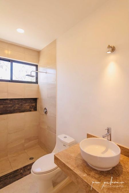 – 4 Baños y medio, el cual hay 1 baño completo junto a la alberca para limpiarse el cloro al salir de la piscina.