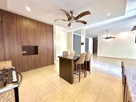 · Amplia cocina equipada y amueblada con alacena e isla desayunada.