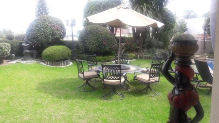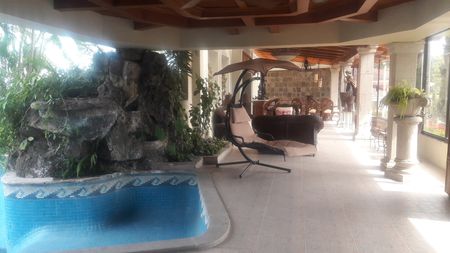 Doble terraza y jardines que rodean toda la casa, ideales para disfrutar del aire libre, con áreas sociales perfectas para reuniones, asadores, fuente decorativa y alberca.