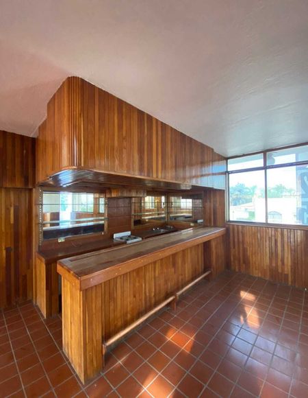 En planta baja cuenta con cochera para cinco autos, área de sala y comedor, cocina integral, una recámara con baño completo, medio baño para visitas y terraza.
