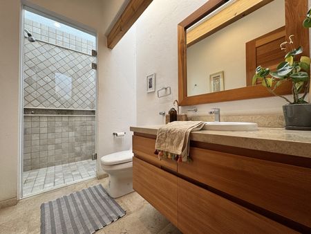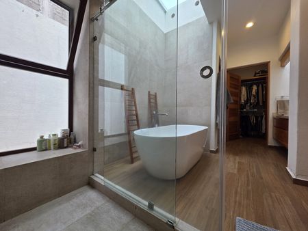 - Máster suite, que conecta con la terraza, walk ing clóset y baño privado, con ducha separada y tina