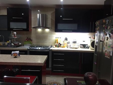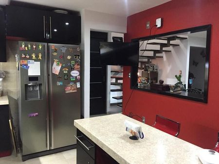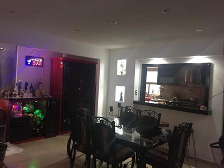 PLANTA BAJA; estudio o cuarto de visitas, recibidor, amplia terraza con techo eléctrico de vidrio corredizo y chimenea, sala, comedor con comunicación a cocina totalmente equipada, cuarto de servicio con baño, amplia entrada de servicio con puerta directa a calle, hidroneumático, calentador grande, tanque de gas 500 L, LINDO JARDÍN FRONTAL.