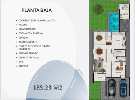 - Piscina: 3 carriles de nado de 25 mts. de largo y área de chapoteadero.