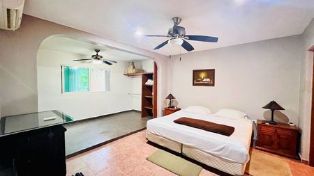 -Recamara principal con cama Queen Size, aire acondicionado, baño completo, estancia y closet.