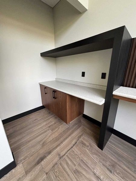 - Espacio abierto muy amplio (puede funcionar como área de comedor o estaciones de trabajo)