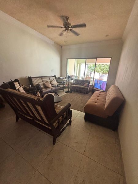 Terraza techada, jardín, piscina, garage techado para 2 autos.