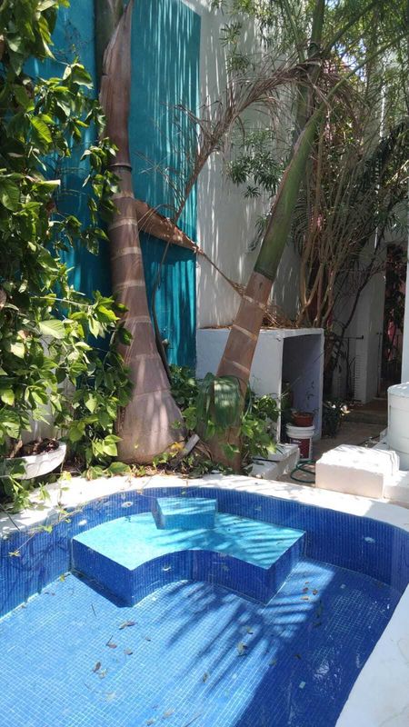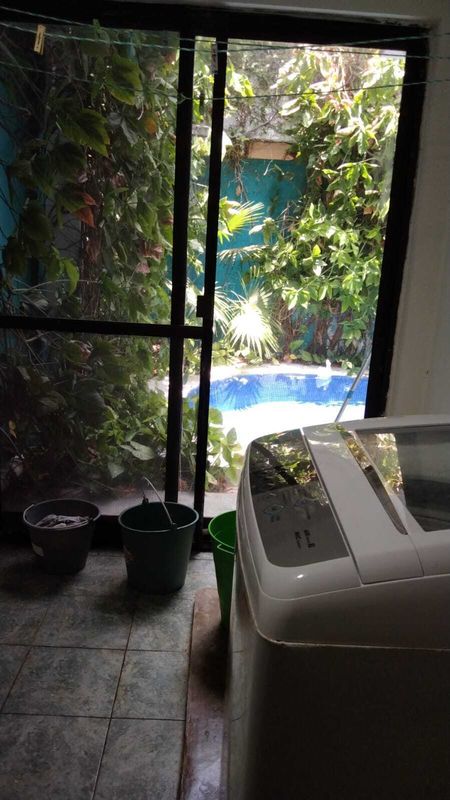 La casa cuenta con un garage para 2 autos con puerta eléctrica, jardines delanteros y traseros con alberca privada, y altas bardas que garantizan privacidad. En el interior, disfrutarás de una sala y comedor separados, una moderna cocina integral, un espacio versátil actualmente utilizado como oficina, y un cuarto de lavado techado.