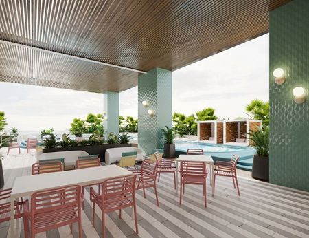 Este nuevo desarrollo ofrece más de 20 amenidades, incluyendo múltiples albercas y terrazas, áreas para tomar el sol, un gimnasio, una sauna, dos salas de spa, una zona de barbacoa, un espacio de coworking y más. El complejo es seguro y cuenta con acceso controlado y cámaras de seguridad. Tiene un lobby estilo hotel, rampas de movilidad, elevadores para camillas, estacionamiento subterráneo y una zona comercial con tiendas y restaurantes.