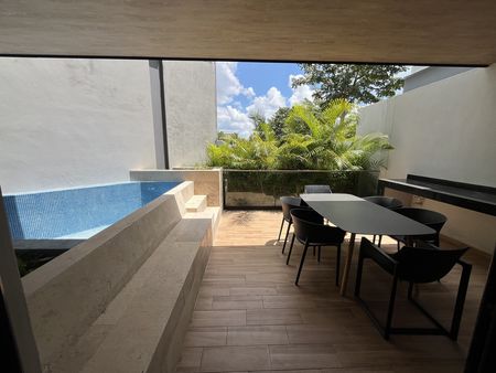 Este moderno departamento en la Planta Jardín con tres recámaras, lavandería y terraza con piscina, es una joya que pocas veces se puede encontrar.