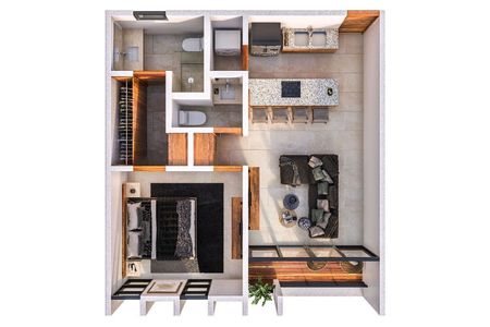 En Mathea tienes todo lo que necesitas: Espacios para ejercicio, espacios de diversion para disfrutar con familia y amigos y también áreas que se adaptan a tu vida laboralModelo B 61 m2