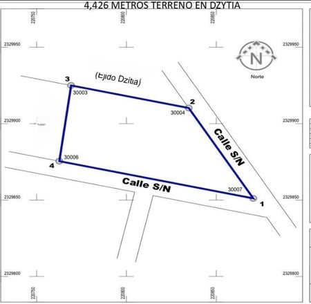 TERRENO EN VENTA CERCANO AL POBLADO DE DZITYA, SON 4426 MTS2 DE TERRENO PLANO EN ESQUINA DE FIGURA IRREGULAR.
