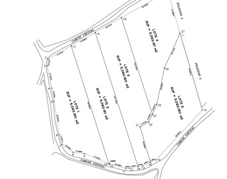 División en terrenos de 5,093 m² (cada uno con forma distinta, permitiendo elegir el que más te convenga)