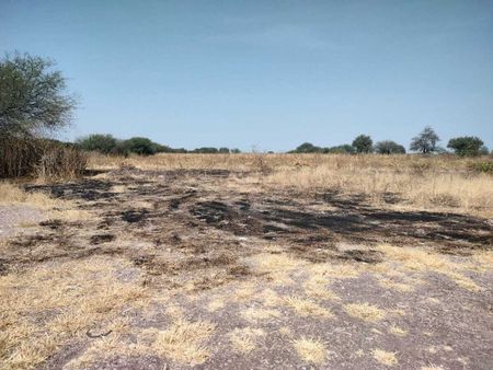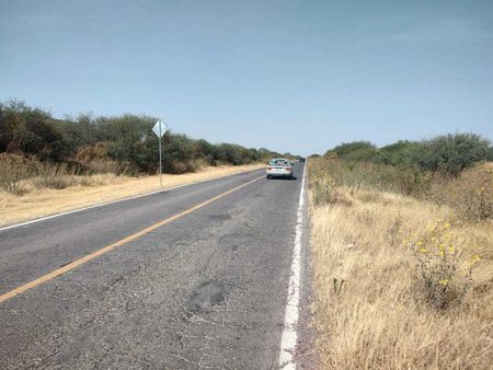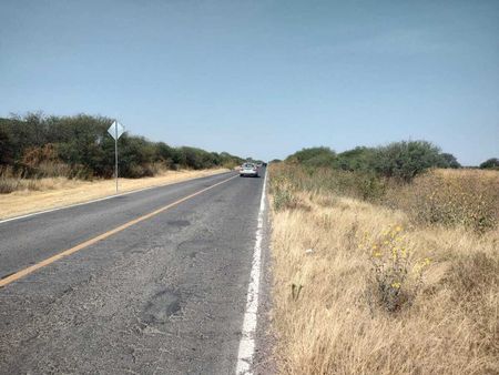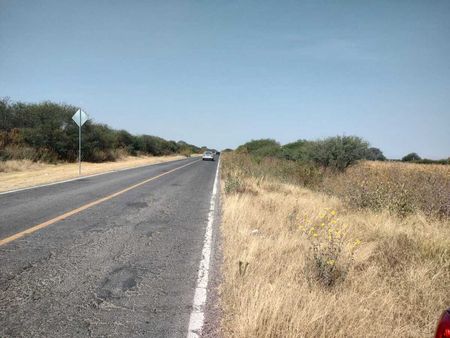 A pie de carretera, en esquina, frente de dos calles, planas, con título de propiedad listo para escriturarse, a 600 pesos el metro cuadrado, salida a San Juan del Río, el parque industrial y Pedro Escobedo, puede ser para bodegas, para estacionamiento de tráiler, excelente ubicación