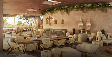 AMENIDADES: terraza con baños, palapa de yoga, chanchas pádel, asadores, casa club, ludoteca, gimnasio, alberca tipo playa, terraza al aire libre, sala de usos multiples, cine al aire libre, fogata, temazcal, juegos infantiles, casa del árbol.