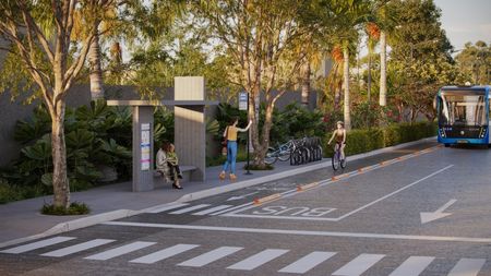 – Paradas de autobús dentro de la privada, jardinería urbana y señalización.