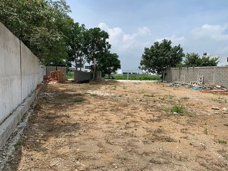 Totalmente plano, bardado con block hueco y muro de contención en la colindancia.